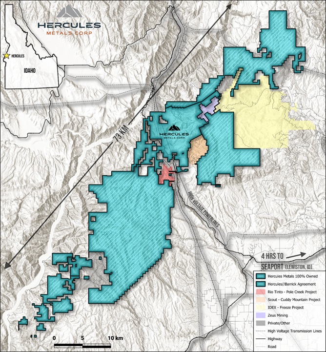 Located in Idaho with surface mining rights; 100%-owned project with no permitting challenges.